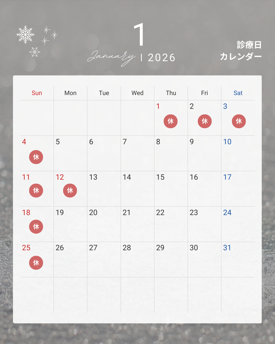 1月スケジュールです。